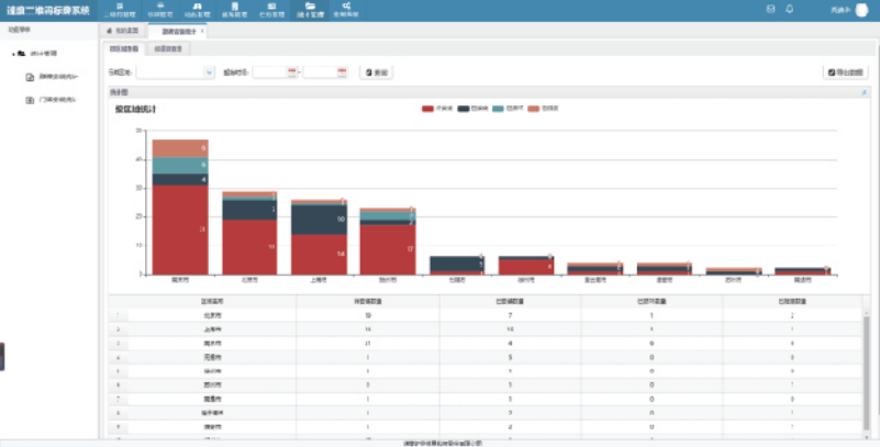 分為路牌安裝統計和門牌安裝統計兩大統計模塊,支持柱狀、餅狀、折線等圖表類型。