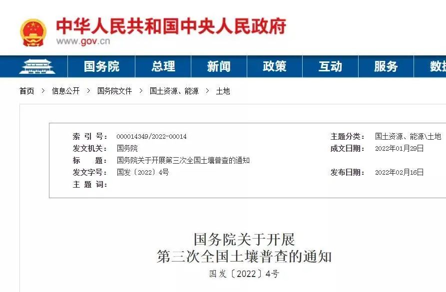 按照黨中央、國務院有關決策部署,為全麵掌握我國土壤資源情況,國務院決定自2022年起開展第三次全國土壤普查。現將有關事項通知如下: