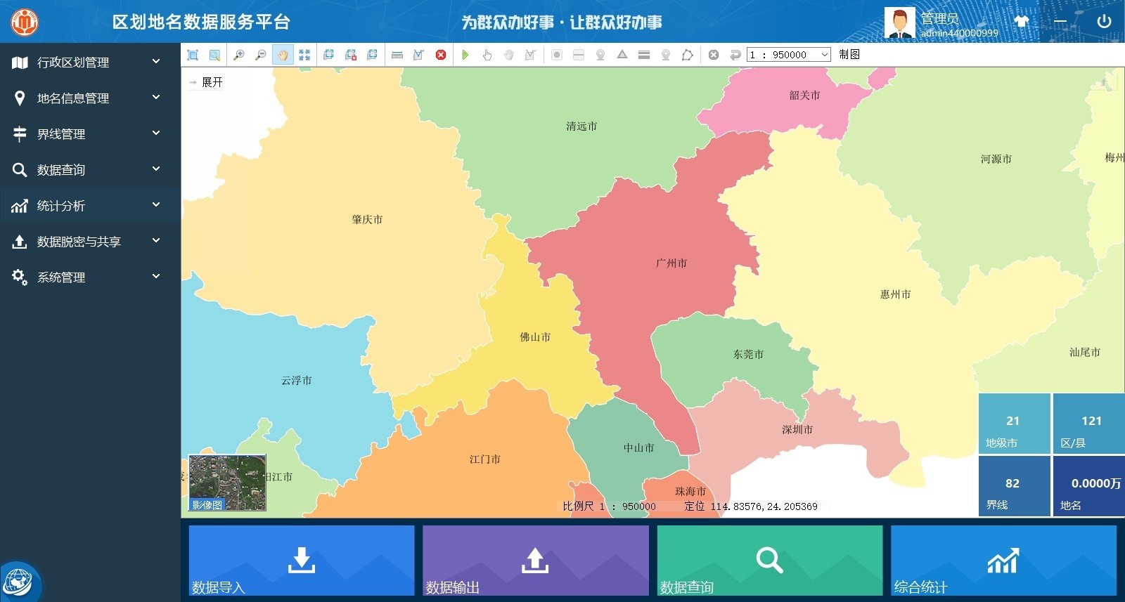 係統以矢量圖為基礎,以區劃地名、界線、界樁、為管理主題,結合相關的地理信息空間數據和屬性數據,將反映界線、界樁、地名的各類空間數據和屬性數據通過計算機進行更新維護、存儲、分析,建立一個能夠快速提供真實準確的地理信息,便於查詢統計及決策分析的區劃地名管理係統。