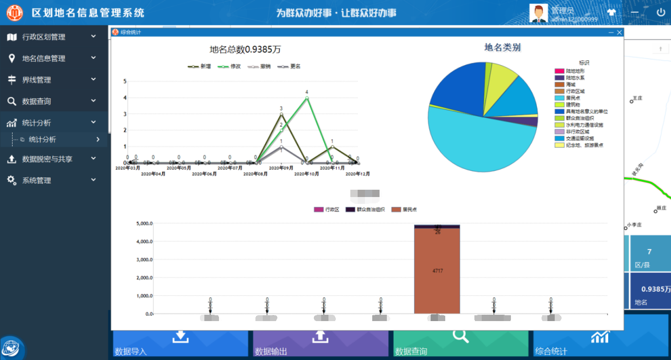 對區劃地名各類信息進行多維度的統計分析,深度挖掘數據價值,及時發現問題,助力政府對地域範圍、區劃類別的數據把控,為宏觀決策提供實際可支撐的分析,使區劃地名數據價值最大化。