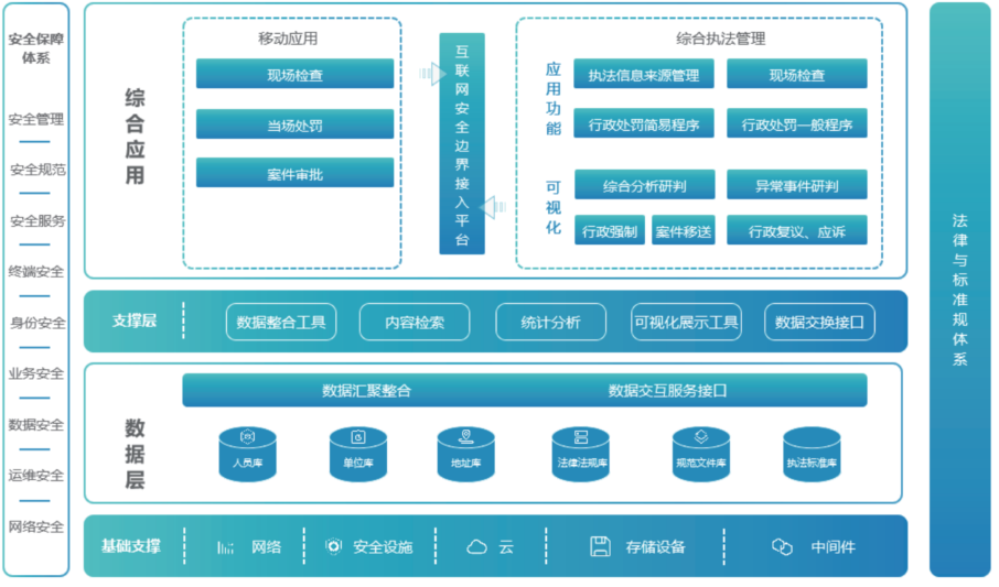 安全生產行政執法管理係統依據我國安全生產監督管理、行政執法管理工作和監察執法工作發展趨勢及現狀,運用大數據、雲計算、物聯網等先進技術,實現了一個高效、安全、實用的信息化安全生產行政執法管理係統。係統包括日常執法檢查、行政處罰、舉報投訴、違法案件登記、業務辦理、審批審核、行政執法文書智能控製、管理查詢等功能,實現執法工作全閉環。